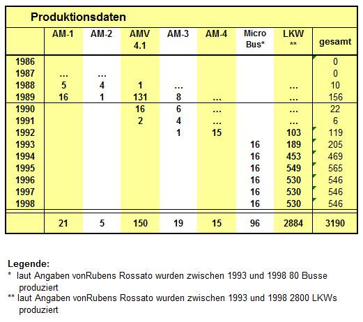 Aus den Aufzeichnungen des Herstellers und Einschätzungen von Experten unter denen sich auch der Sohn des Firmengründers Kiko Malzoni befindet, lassen sich folgende Produktionszahlen ableiten: