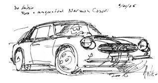 Mittels Handzeichnungen wurde das spätere Aussehen des Fahrzeuges grob festgelegt. Erst im zweiten Schritt kommen die Ingenieure am Zeichenbrett ins Spiel. Basierend auf den Konstruktionszeichnungen erfolgte die Umsetzung des ersten Prototypen. In den frühen 1960ern war die Technik "wireframe" sehr verbreitet. Basierend auf dem bestehenden Chassis wurde mit stabilen Metallstangen die Karosserie vormodelliert. Erst wenn die Proportionen und die Ergonomie halbwegs passten wurde das so entstandene Gitte mit Blechplatten beplankt. Soe entstand die erste Karosserie aus Metall, von der später die Formen für die Produktion der GFK-Karosserien genommen wurden.