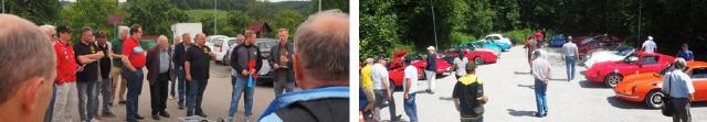 Neben vielen Informationen über die Autos wurde dabei auch auf die Gründung und Entwicklung der Firma und Marke Porsche eingegangen. Nach einem spannenden Museumsbesuch ging es weiter zum Schloss Monrepos in Ludwigsburg. Dort wurde eine kleine Pause eingelegt und man konnte bei schönem Ambiente eine Stärkung zu sich nehmen. Frisch gestärkt ging es dann zurück zum Hotel nach Löwenstein. Dort wartete zum Ausklang des Tages ein 3-Gang Menu für uns.Der Samstag startete wieder morgens auf dem Hotelparkplatz. An diesem Tag gab es zum Fahrerbriefing noch eine kleine Überraschung, jeder Teilnehmer bekam ein Rallye-Schild zur Weinbergrallye durchs Heilbronner Land. Der Tag umfasste drei Etappen, der erste Anlaufpunkt war die ehemalige Bergrennstrecke zwischen Gronau und Prevorst. Hier wurde in den Jahren 1968 bis 1971 der Heilbronner-ADAC Bergpreis ausgetragen, bei dem sich bis zu 10.000 Zuschauer entlang der Strecke versammelten. Im ersten Austragungsjahr triumphierte ein Porsche Carrera 906 als Gesamtsieger.