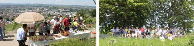 Als wir diesen ersten Wegpunkt erreicht hatten, wurde das Feld etwas aufgelockert, damit jeder Pumeiro nach seinem Belieben die Bergrennstrecke befahren konnte. Danach ging die Tour mit gemäßigten Geschwindigkeiten und im Verbund weiter durch abgelegene Waldstraßen. Auf dem Weg zum ersten Rastpunkt, dem Heilbronner Wartberg, führten uns die Straßen auch direkt durch und entlang vieler Weinberge. Auf dem Wartberg angekommen wurden die Pumeiros mit einem super Ausblick über Heilbronn und einer schwäbischen Brotzeit bei herrlichem Wetter empfangen.